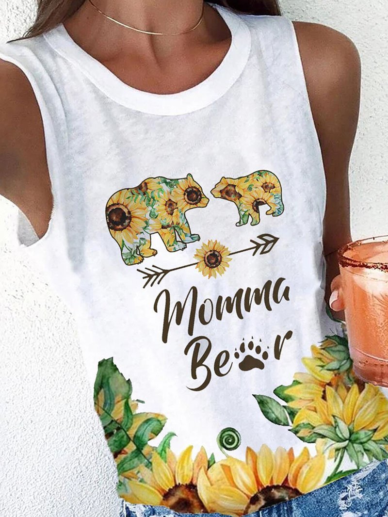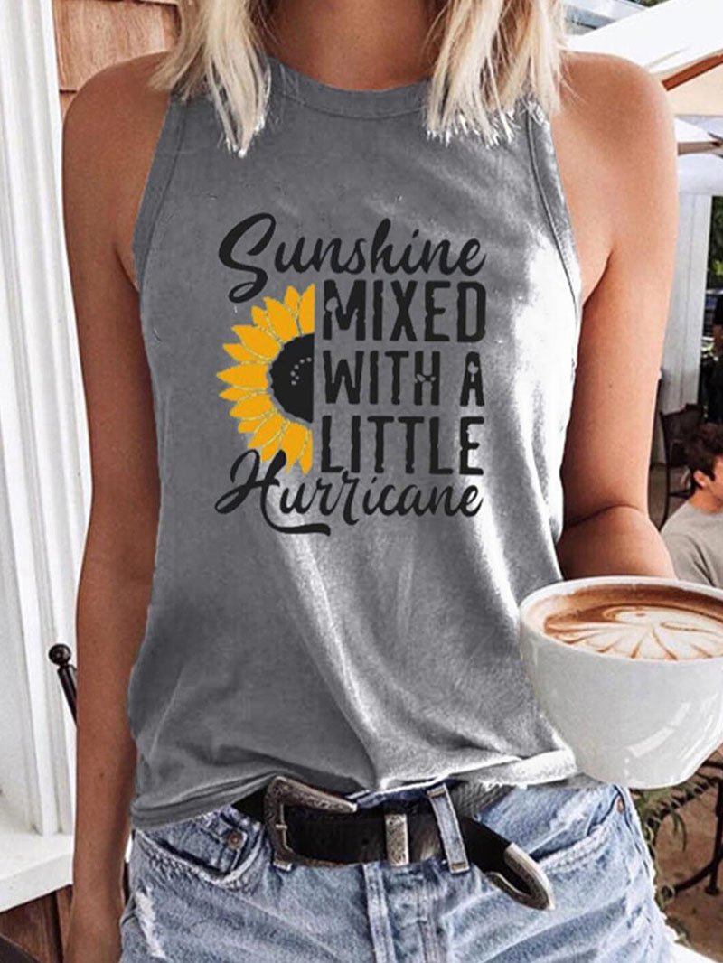 Sunflower Butterfly Letter Print Round Neck Sleeveless Top