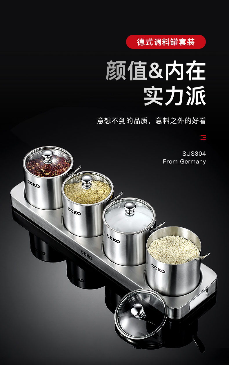 CCKO厨房调味罐套装调味瓶欧式创意304不锈钢油盐罐调味盒佐料罐