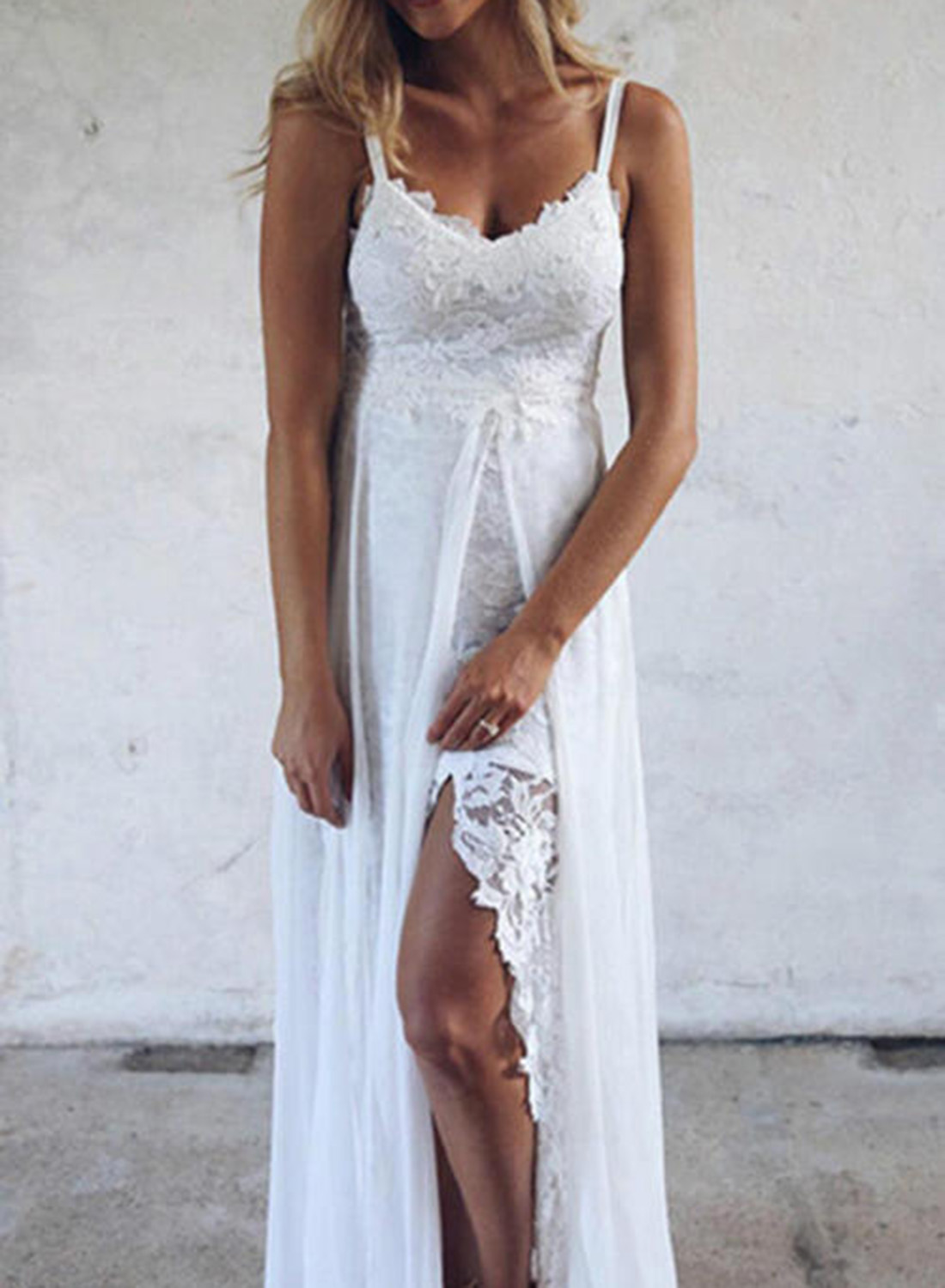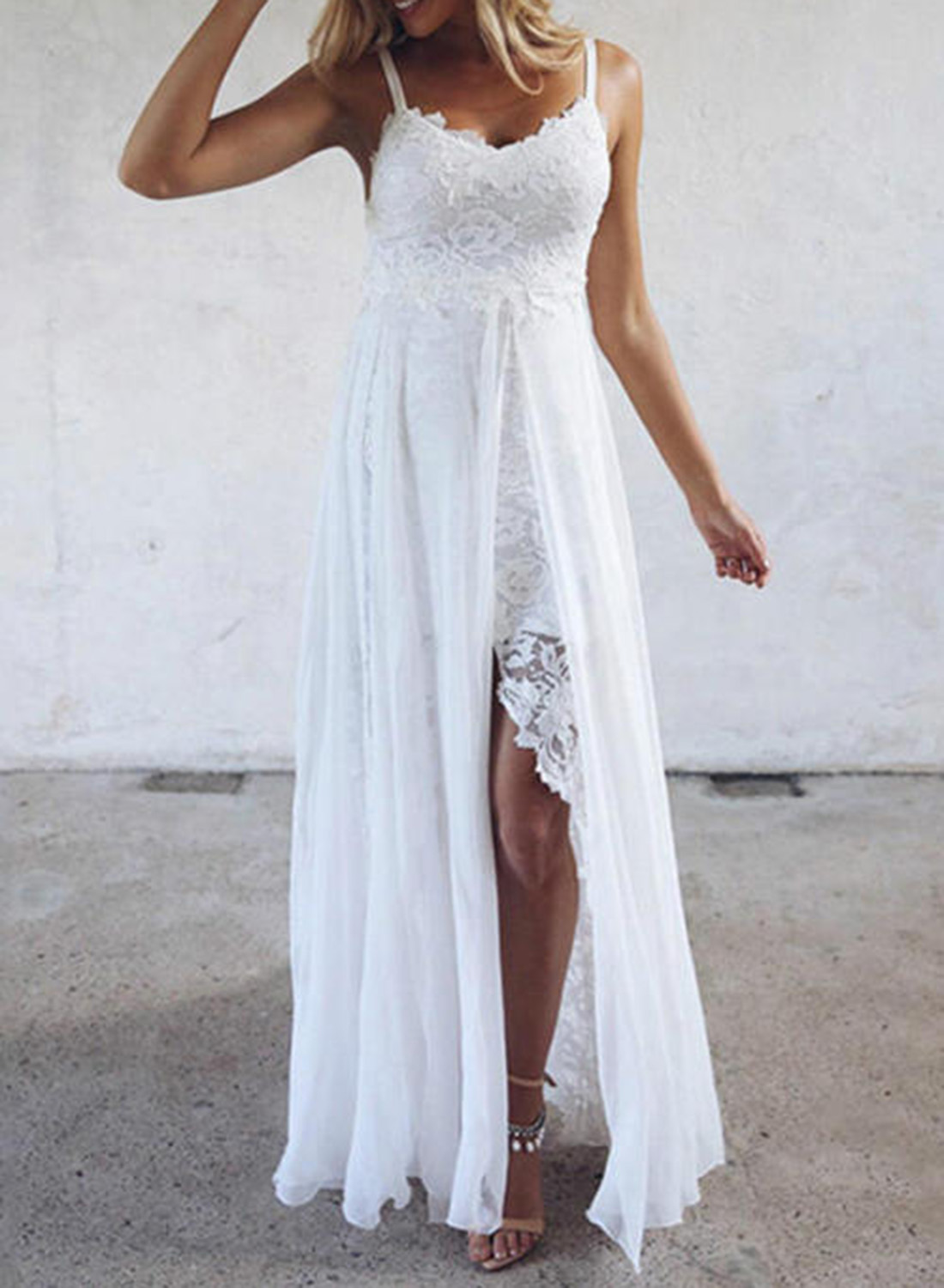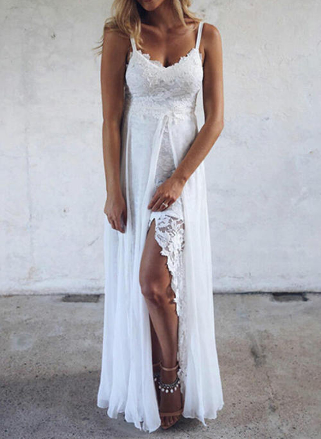 Women's Maxi Dresses Lace A-line Solid Sleeveless Spaghetti Daily Boho Maxi Dress