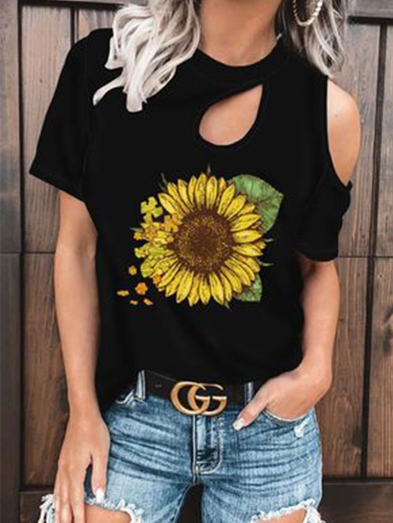 Women's sunflower print short-sleeved tops