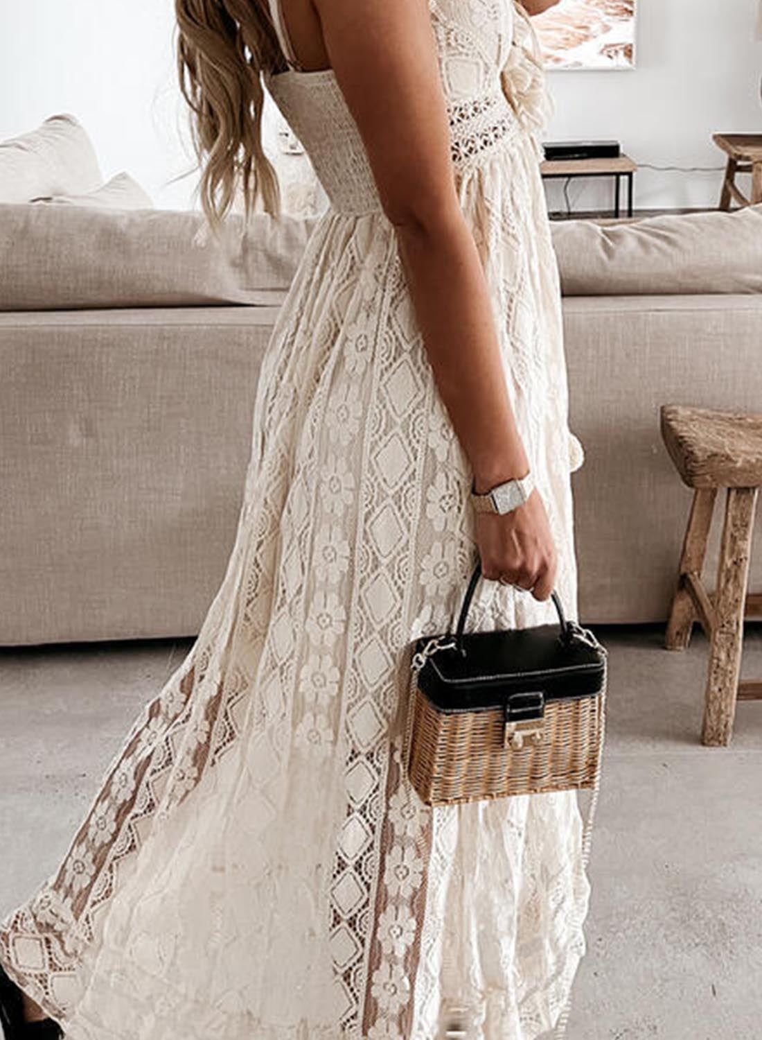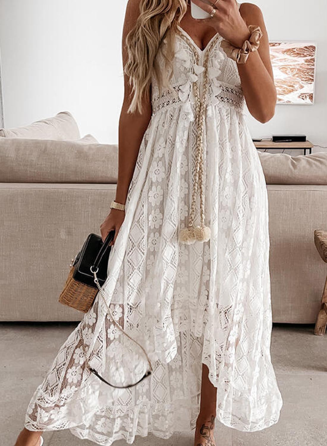Women's Dresses Lace Ruffled Drawstring Cami Maxi Dress