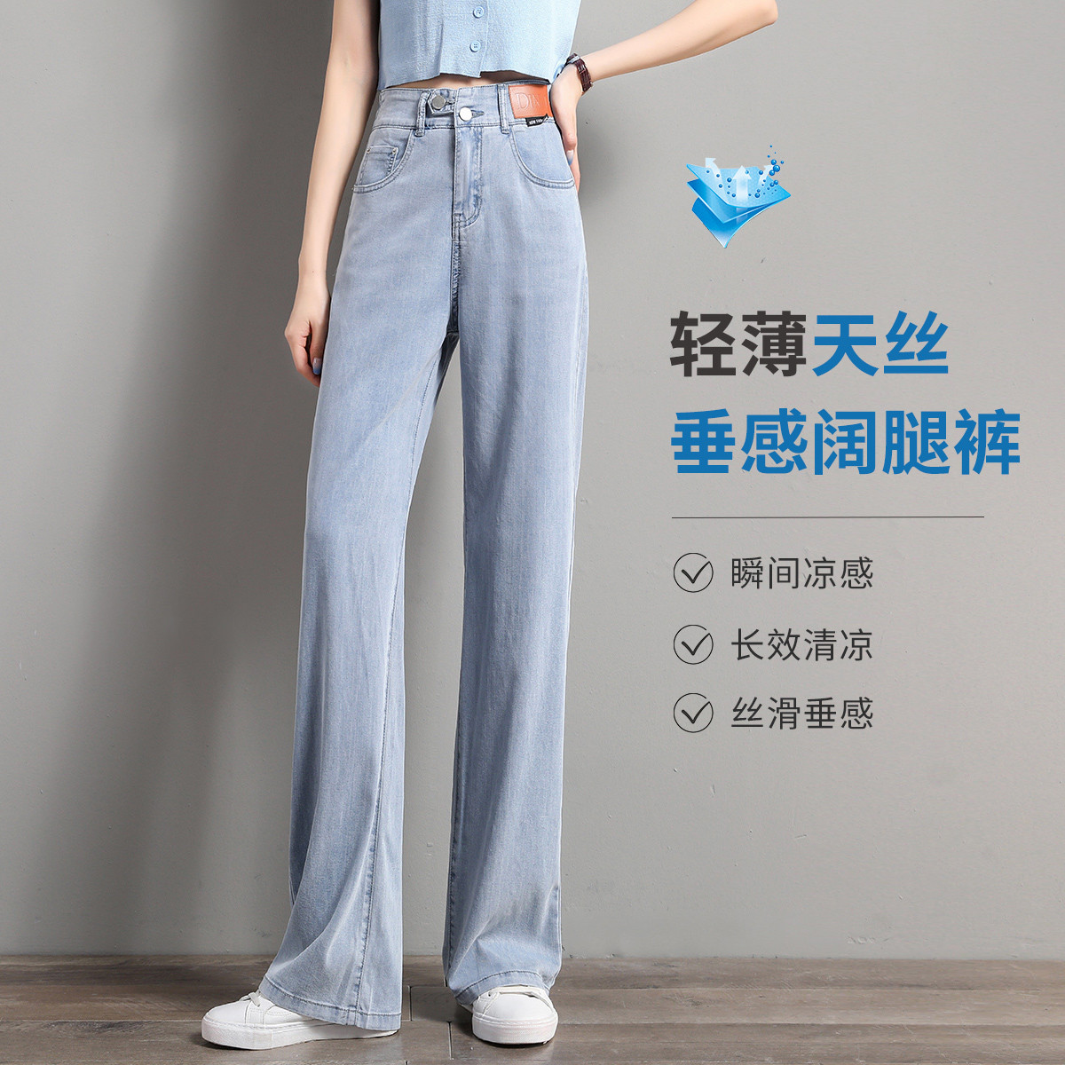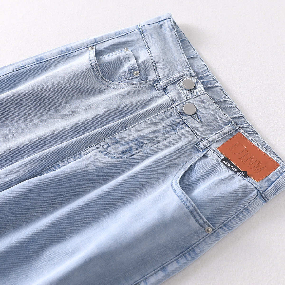 夏季薄料天丝牛仔裤高腰百搭刺绣哈伦裤冰爽休闲松紧抽绳九分裤女