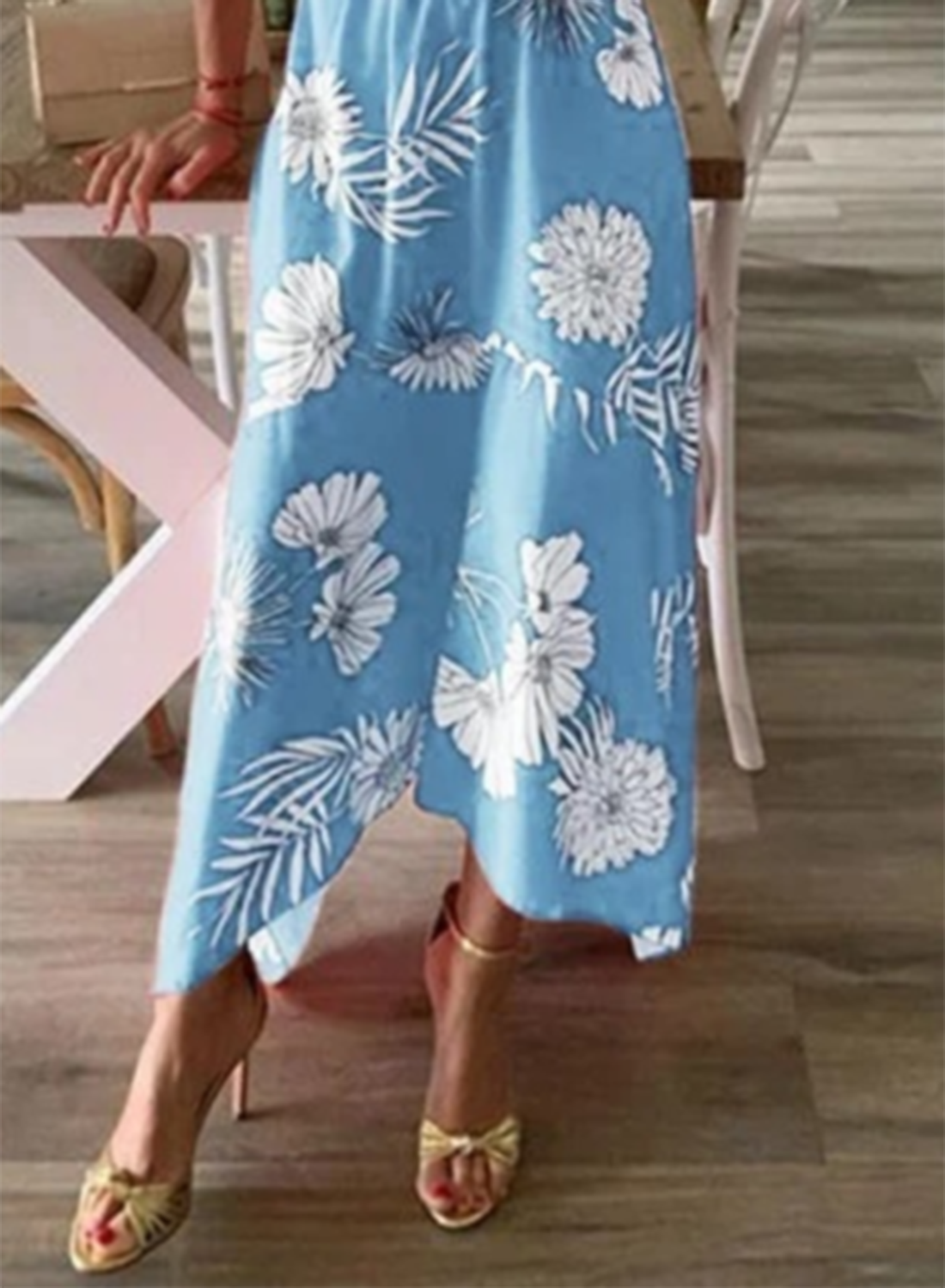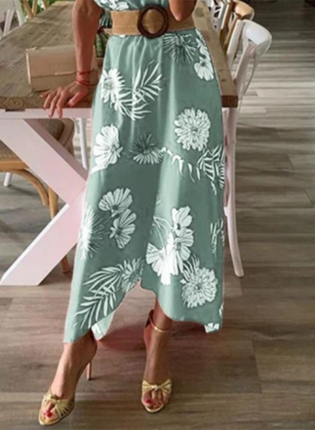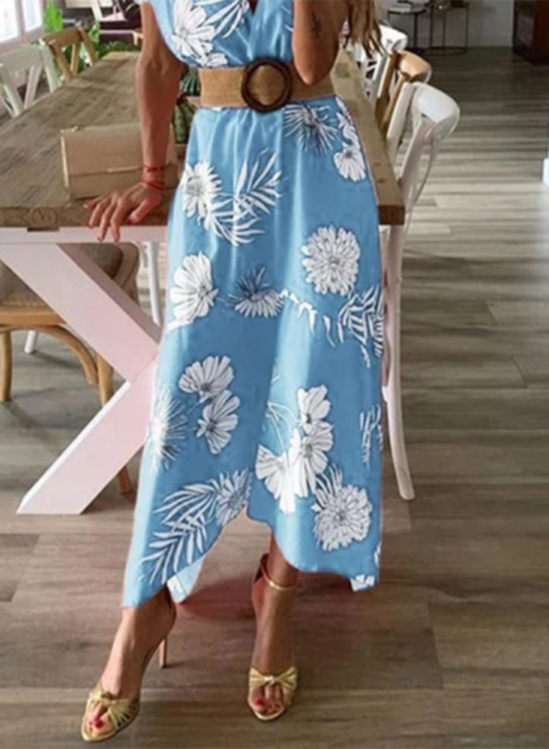 Women's Maxi Dresses A-line Floral Short Sleeve V Neck Vintage Boho Maxi Dress