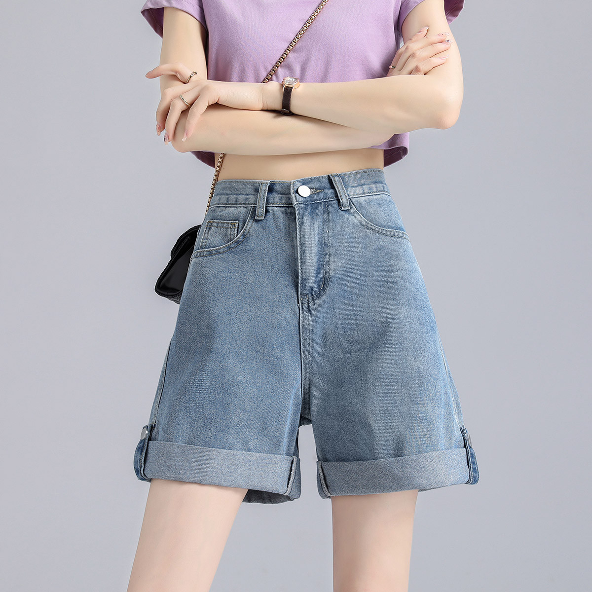 牛仔短裤女夏季薄款宽松显瘦直筒牛仔裤a字五分裤阔腿休闲牛仔裤