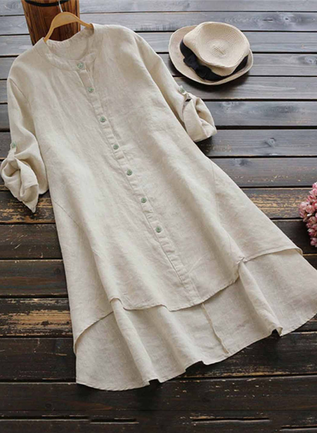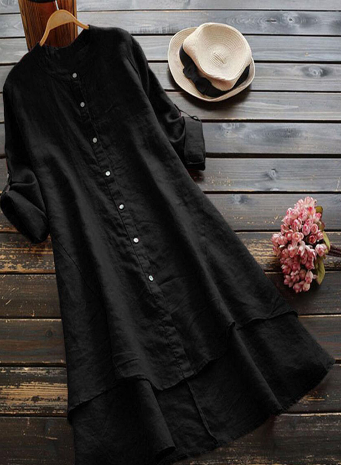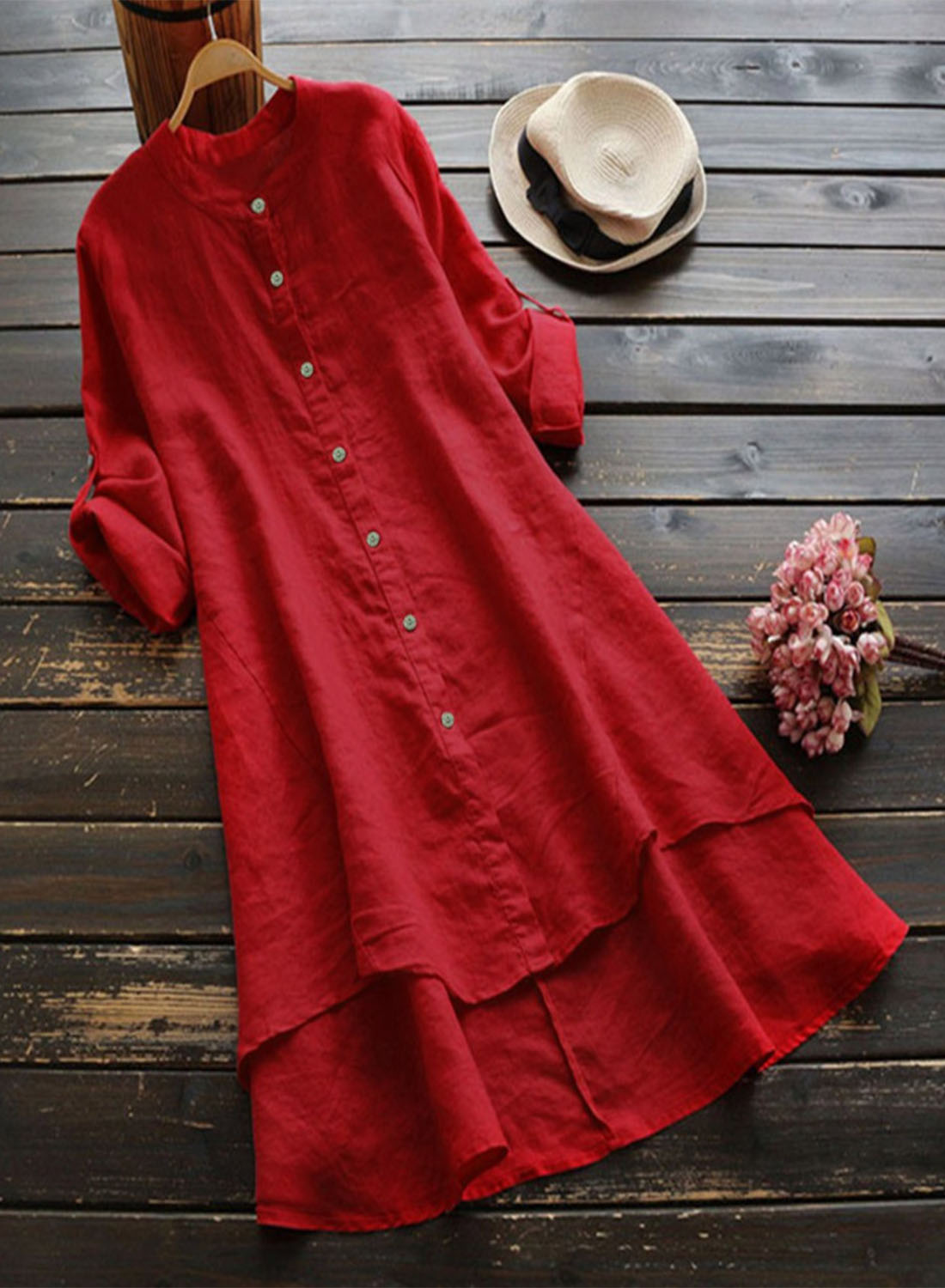 Women's Dress Linen Solid Button-up Maxi Dress