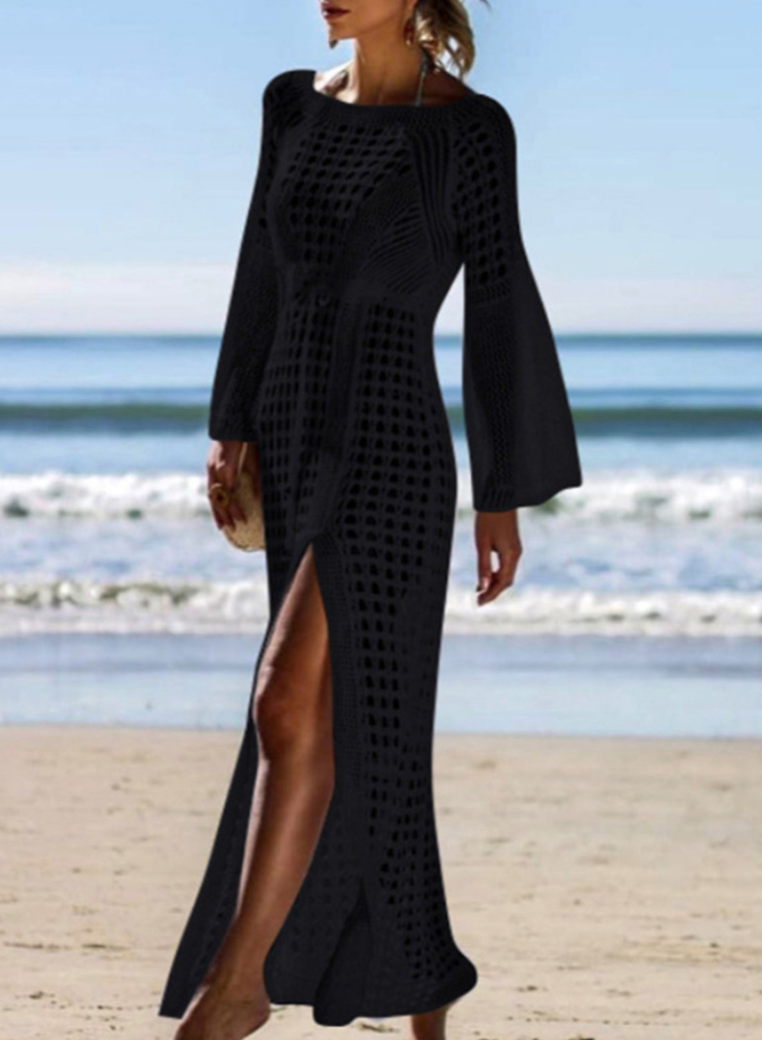 Women's Maxi Dresses Knitted Waist Split Hem Dress
